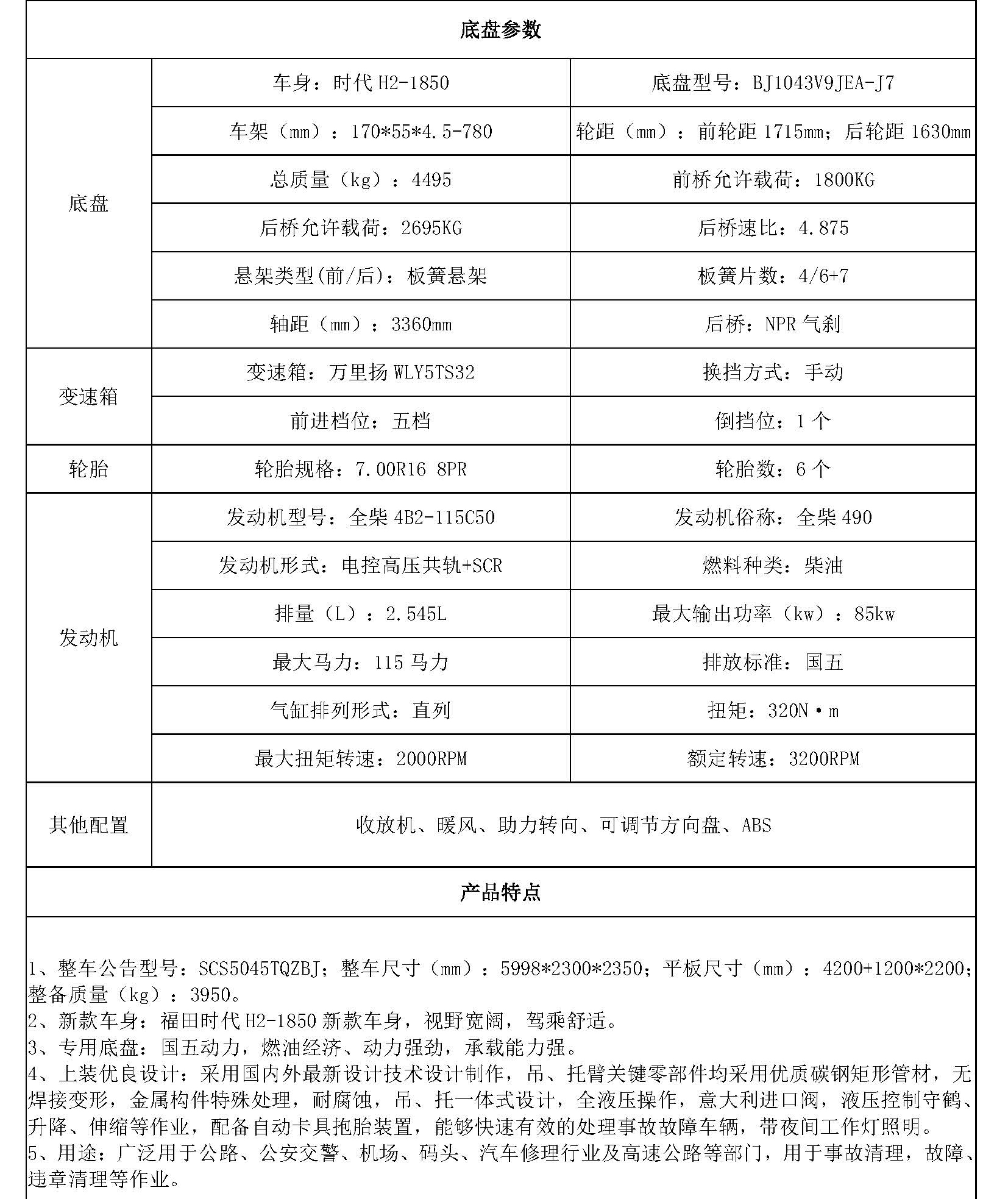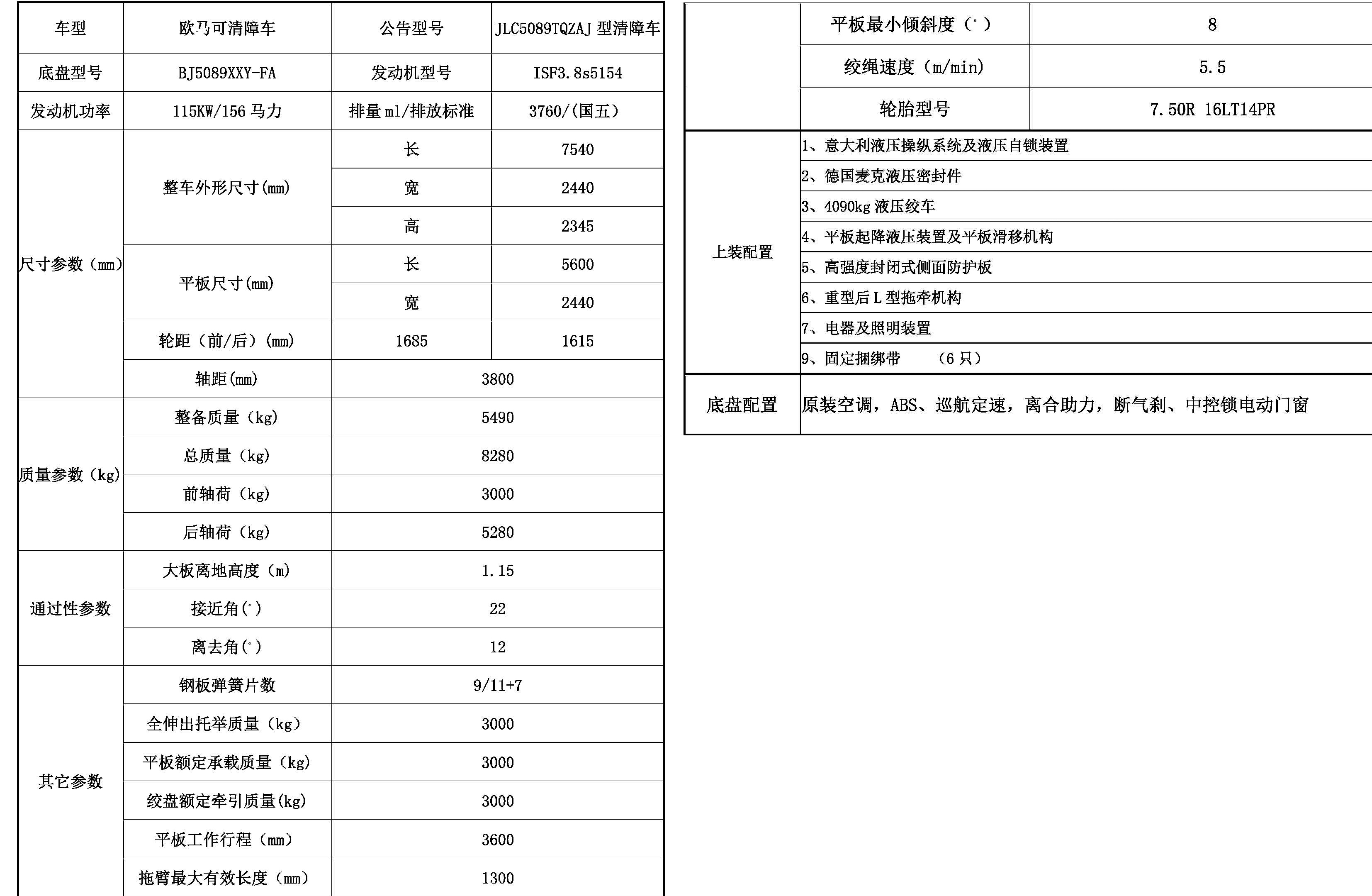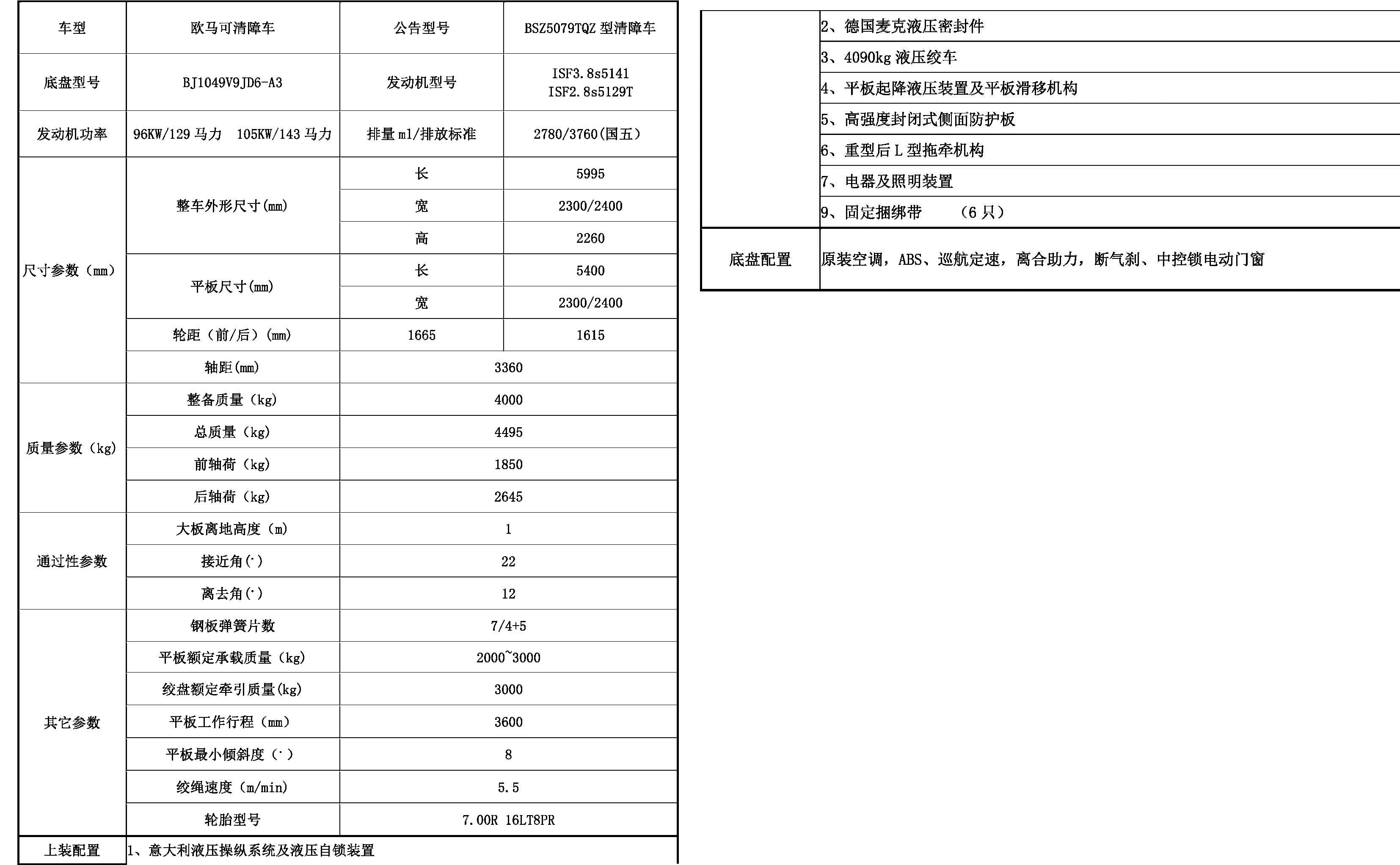 福田欧马可清障车(蓝牌)